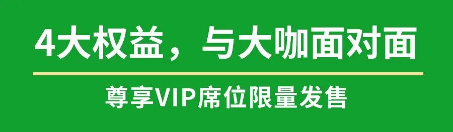 大会前排专属VIP限量发售,与50+嘉宾近距离面对面,更有4大专属权益,专属精彩体验,助力更多认知提升和行业资源收获。