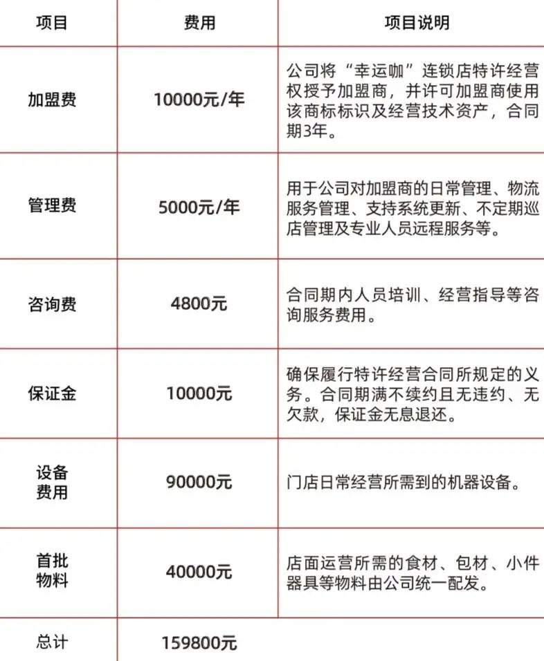 幸运咖品牌加盟资费标准,图源幸运咖