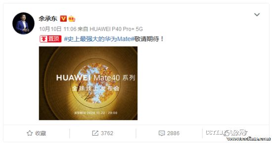 在苹果官方宣布新品发布会之后,紧接着华为手机官方微博发布消息,华为Mate 40系列全球发布会定于欧洲中部夏令时间10月22日14点(北京时间10月22日20点)举行。