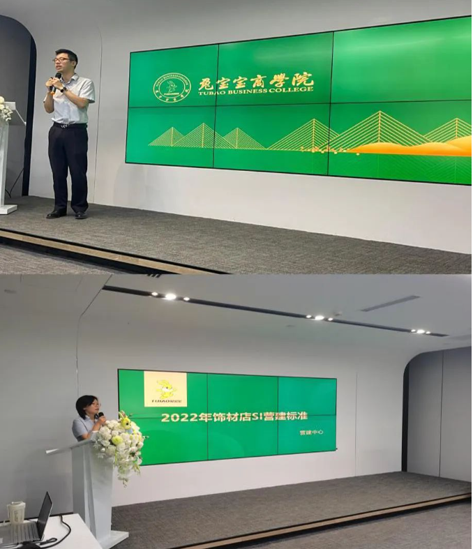 四川区域副经理沈利明围绕兔宝宝产品展开,全方位的展现了兔宝宝目前完善的产品结构,强大的产品力赢得了现场客户的纷纷认可。紧接着由兔宝宝营建部副经理景艳彬作关于“2022年饰材店SI营建标准”的主题演讲,让所有参会意向加盟商了解到公司营建方面的政策和支持。
