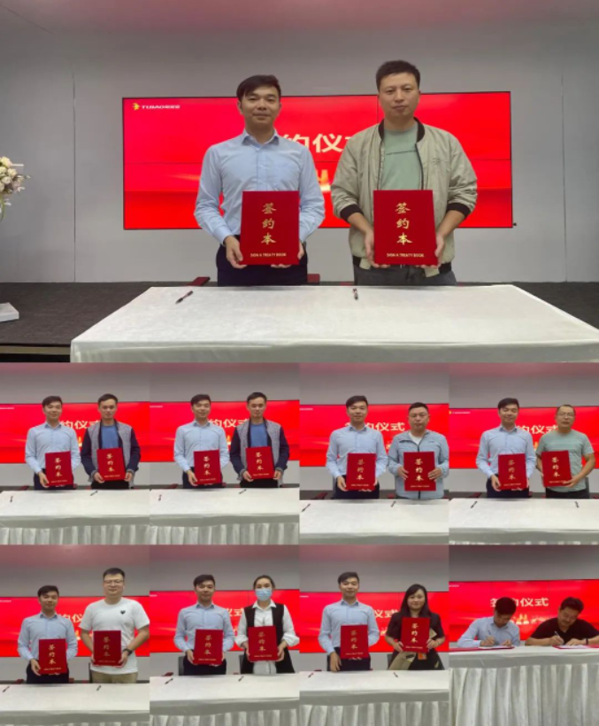 在各版块的介绍之后,会议进入签约环节,大家踊跃签订协议,并在现场举行了签约仪式,成功签约24家。在兔宝宝帮扶体系+品牌实力+市场前景等多重利好环境下,本次加盟招商会成功举办。今后,兔宝宝将会和各位伙伴携手共赢,共创辉煌。