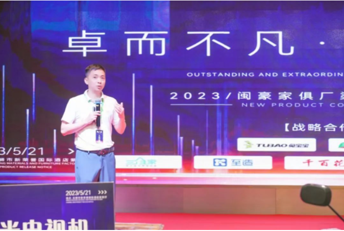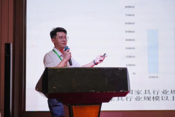 兔宝宝福建销售公司总经理潘书捷代表德华兔宝宝装饰材料销售有限公司对在场的客户表示感谢及欢迎,他分享了目前板式家具行业现状、家具厂未来的竞争方向以及兔宝宝对于家具厂的支持以及赋能,希望兔宝宝能够助力家具厂客户做好转型应对竞争。