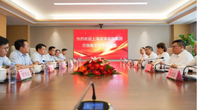6月5日,上海波涛装饰集团总经理汪艳、常务副总经理范杰、营销中心总监彭飞、材料管理中心总监谈论、审核管理中心总监单帮红等管理团队莅临德华兔宝宝家居销售有限公司参观交流。