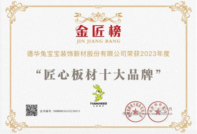 金匠榜榜单出炉,兔宝宝揽获三项实力大奖!