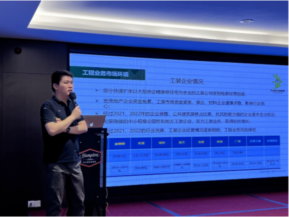 紧接着由工装运营中心施海峰为经销商家人们分析目前工程业务市场,并对2023年下半年度工装业务的规划给予赋能。
