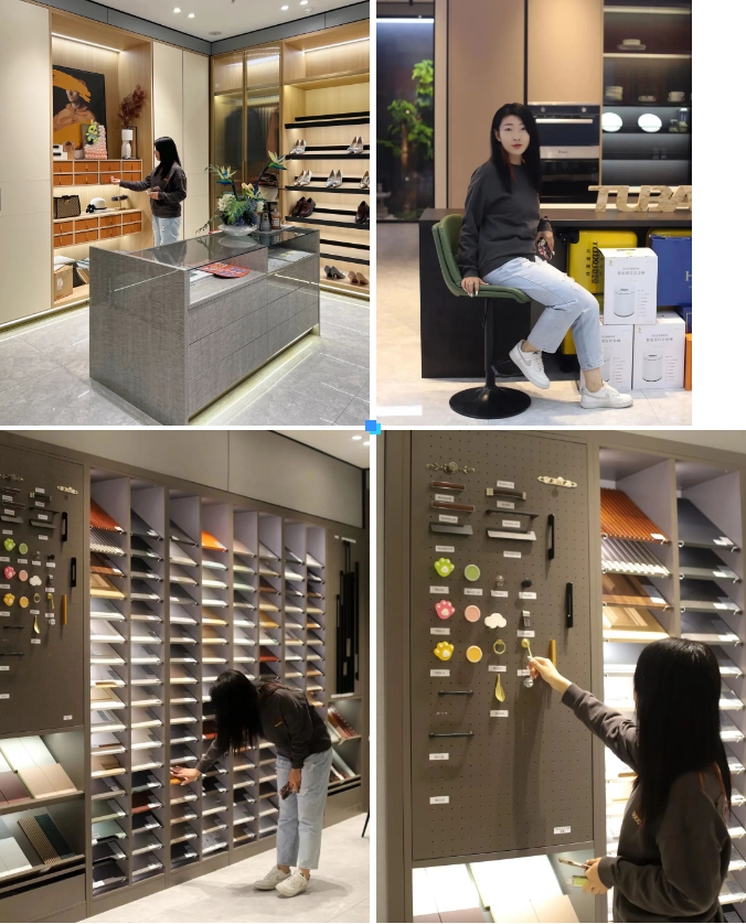 1、门店内有多种定制柜的场景体验,卧室、衣帽间、客厅、餐厅、书房等应有尽有。