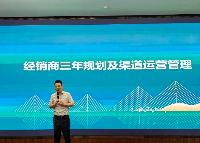 随后由湖北销售公司区域副经理廖祥俊对2023年上半年度乡镇渠道作出总结以及对下半年度进行规划,给各经销商们分享乡镇渠道成功开发案例。