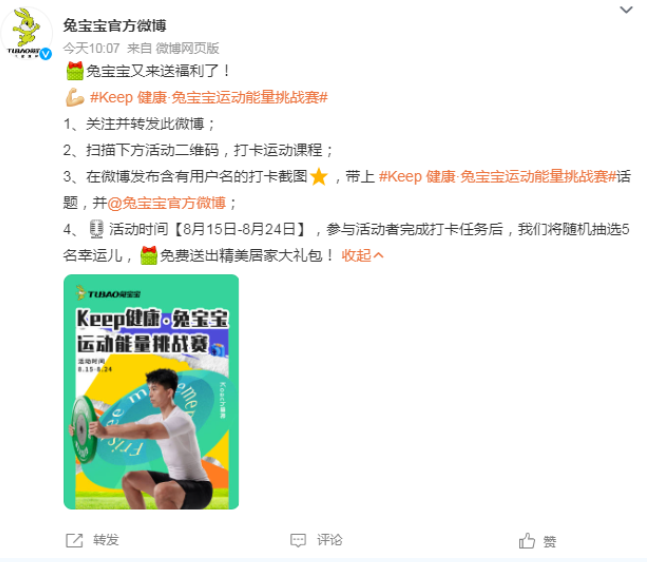 3、在社交媒体发布并@官方,带#Keep 健康·兔宝宝运动能量挑战赛话题。