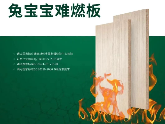 兔宝宝难燃胶合板,采用全面升级的浸渍阻燃技术,通过改变传统浸泡工艺,在环保胶粘剂调配环节增加阻燃剂,在不影响产品理化性能的前提下,大幅提升板材的阻燃性能。经国家防火建筑材料质量检验检测中心检验,兔宝宝难燃胶合板燃烧性达到难燃B1-B级要求,起到了很好的阻燃作用,可以减缓火势蔓延;经多次试验反复测试,较普通板材产品燃烧时释放的烟气总量更少,600s总烟气生成量低于国家标准≤50m²,产烟特性等级达到GB 8624《建筑材料及制品燃烧性能分级》t1级标准要求。