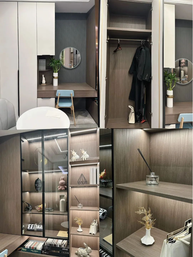 1、兔宝宝易装馆的样板间柜子细节感很精致,高级,整体简约风很符合大部分人的家装需求。