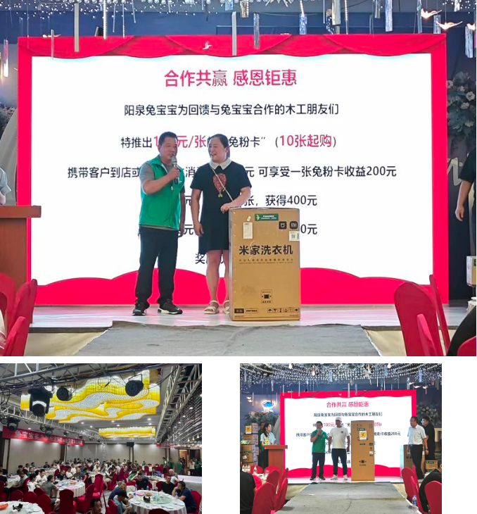 会议最后,由晋中区域经理董斌对此次优惠政策进行宣讲,为诚挚感谢工匠师傅一路同行和辛勤付出,以购卡赠豪礼、购卡抽奖等多种形式回馈宾客。丰厚的奖品让现场嘉宾欢呼雀跃,纷纷交付意向金,现场捷报不断。活动共邀约300余人,签到率超80%,最终以售卡650张的成绩圆满收官,多位运气爆棚的木工师傅中了大奖,欢乐的氛围将本次活动再次推向高潮。让我们一起回顾现场盛况,感受现场热烈的气氛吧。
