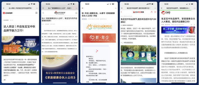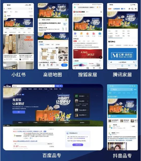 根据兔宝宝中秋品牌节活动,融合兔宝宝的品牌理念与价值,在多家主流媒体,线上软件等多类目网络媒体共同为品牌发声,借势媒体,放大全网热度同时拔高活动高度。