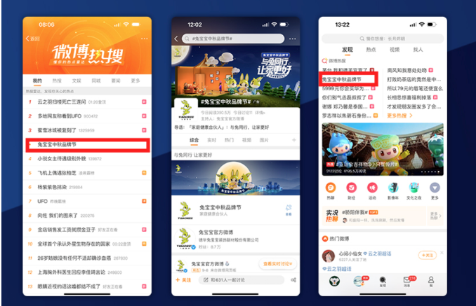 打造微博热搜为兔宝宝中秋品牌节活动造势吸睛,打破传播结界和壁垒,活动声量从家居社区辐射到大众舆论阵地,打造了行业内传播的新范本。