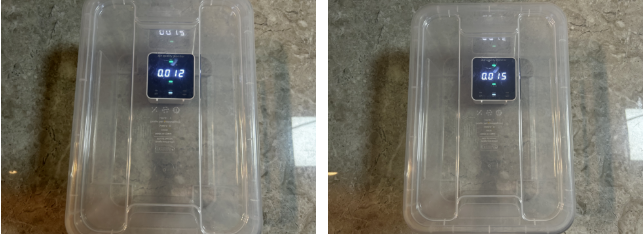 先测试下密封盒里的甲醛含量,安全线是在0.08mg/m³。
