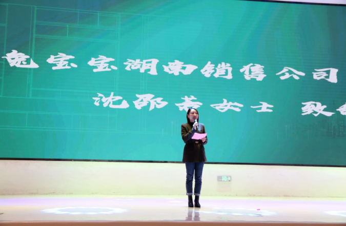 紧接着兔宝宝湖南郴州家具厂渠道经销商王艳女士发表致辞,王总表示兔宝宝作为家居行业的中坚力量,在市场上有较高的认可度。作为郴州区域家具板运营主体、服务主体,我们将不遗余力推进兔宝宝在郴州地区家具厂渠道的发展,及时对产品进行更新换代,确保提供更优质的产品和更完善的服务。
