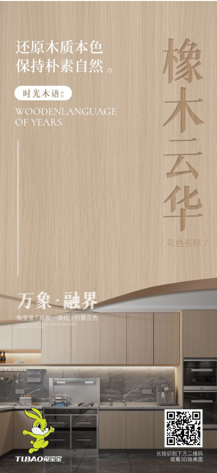 如今,艺术与生活的界限越来越模糊,兔宝宝一直倡导打造实用与艺术兼具的生活空间。在TUBAOHCC2023秋季新品发布会上,推出了「万象·融界」系列花色,让用户能够剥离常态室内空间的思考方式,多维度、全身心的去感受和体验家居产品所带来的感觉。