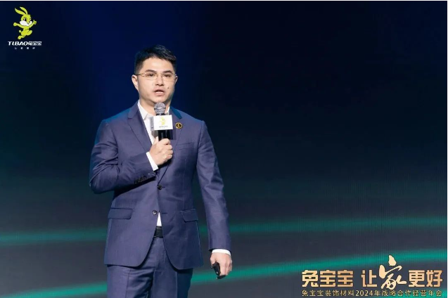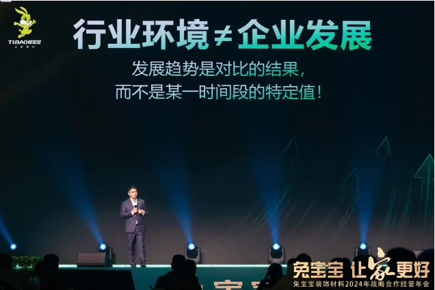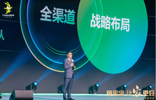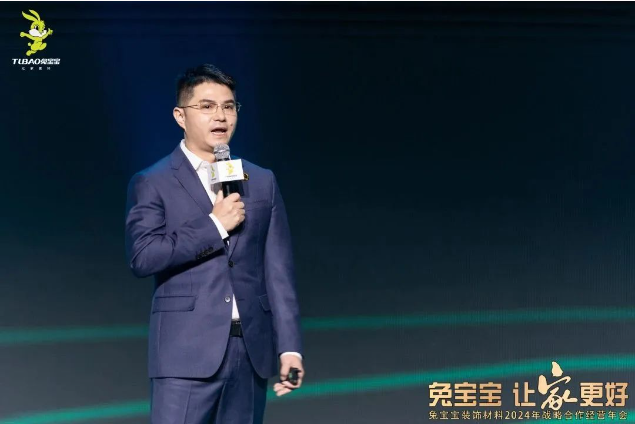 1月18日,兔宝宝装饰材料2024年战略合作经营年会上,站在了新的发展起点,德华兔宝宝装饰新材股份有限公司副总经理、德华兔宝宝装饰材料销售有限公司总经理赵建锋做了《兔宝宝装饰材料业务工作规划报告》的主题汇报。