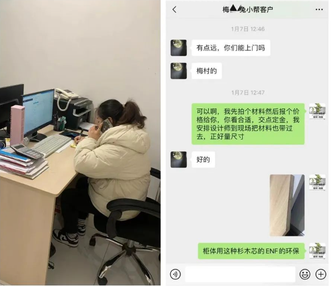 12月10日的下午,兔宝宝易装无锡居然之家店销售姚艳照常打开兔小帮查看客资,这天正好有一个是从天猫上预约到店的客资,门店在联系沟通、上门服务之后,这个由公司派单的客户为门店带来13万的销售额。随后我们也向姚店长学习并了解了一些线上客资的转化技巧。