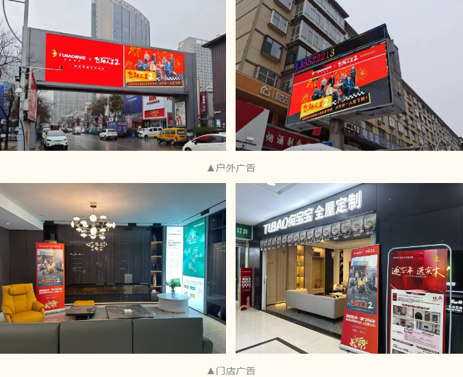通过线下门店和户外广告的广泛覆盖,成功吸引了大量公众的注意力,形成了强烈的宣传效果。还通过开展线下观影活动进一步拉近了与消费者的距离。邀请大家一起看电影不仅提供了一种新颖的娱乐方式,还增强了兔宝宝的品牌形象,也提高了消费者对品牌的认同感和归属感。