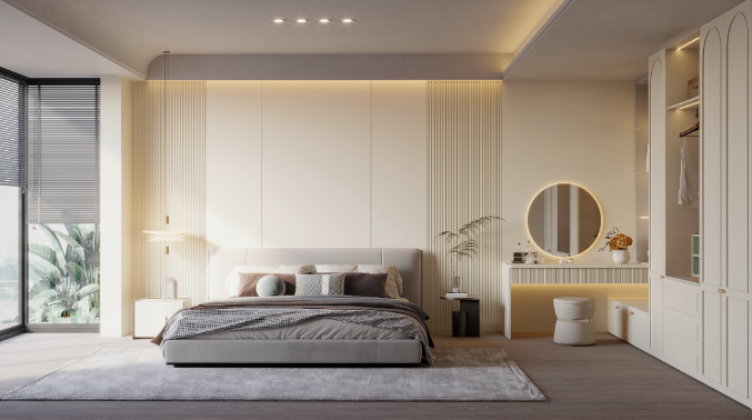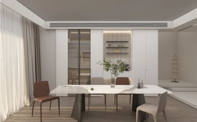 嵌入式设计优势在于能完美地与嵌入的载体高度契合,不仅整体感更强,还可以极大减少空间内被占用的面积,从视觉上放大空间,从使用感上提高舒适度。还可以巧妙利用墙面,安装壁挂式家具、置物架等,可以有效利用墙面空间,同时减少地面空间的占用。