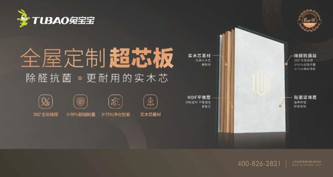 兔宝宝深耕家居行业三十余年,专注健康家居产品的研发、设计、生产与营销,以环保和实木类基材为核心优势,经营橱衣柜、衣柜、地板、木门、软装家具全空间定制产品,打造“门墙柜地软一体化定制”,为每一个家庭带来更好的生活方式。
