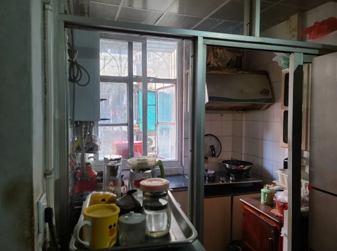 改造前烹饪区在角落,备菜可操作台面少,光线不佳。
