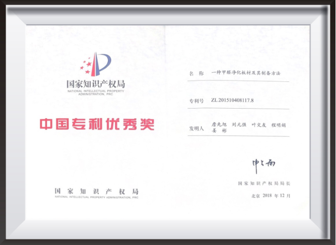 兔宝宝室内甲醛分解(净化)免漆生态家具板采用公司“一种甲醛净化板材及其制备方法”专利技术制造而成。