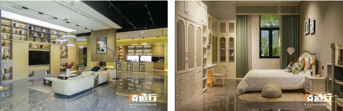 在兔宝宝全屋定制展厅中可以看到成品效果,通过模拟真实的家居环境,展示了不同风格、不同功能的定制家具,如衣柜、书柜、橱柜等。在这里你不仅能感受到兔宝宝板材的优质触感和环保性能,同时也能看到板材在不同空间、不同风格中的实际应用效果。兔宝宝全屋定制一站式的服务,为消费者提供了个性化、高品质且环保的家居环境。
