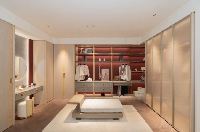 「境雅」系列衣帽间配置悬挑梳妆台,为达人提供专属化妆、拍摄场地,在有限的空间中注入全新的生活方式。