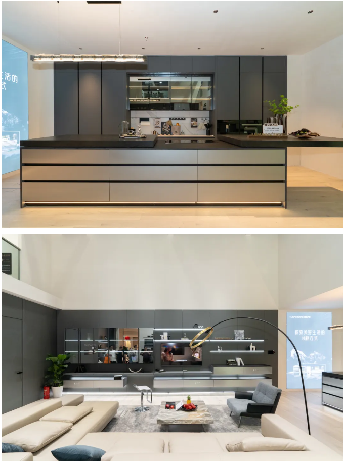 幻影系列新品打造场景化社交、智能化体验,通过液态金属漆工艺、色彩和灯光,营造科技未来风,为都市精英和多口之家打造以“社交”为核心的新型高端家居空间。