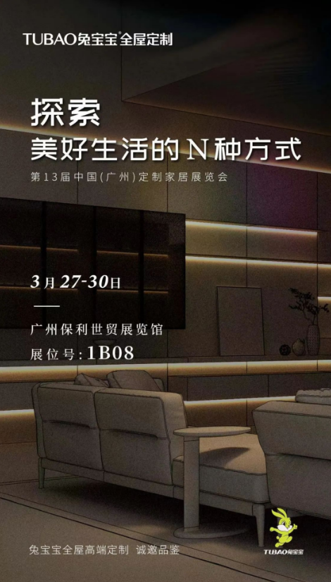 3月27日至30日,展会持续进行中,抖音“兔宝宝全屋定制”同步直播探展,兔宝宝全屋定制诚邀全国装企朋友莅临中国(广州)定制家居博览会1B08展位,一起探讨行业趋势,解锁财富密码,共赢整装时代!