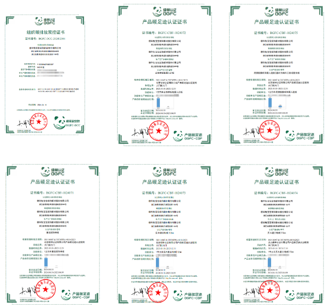 为进一步推动双碳管理,2023年9月,公司正式启动“碳管理”项目,构建碳管理知识框架并推动碳管理体系建设。公司从组织和产品两个层面入手,盘算家底,核算公司近5年碳排放及2023年度各类产品碳足迹值;在摸排碳排放同时,公司搭建科学的碳管理体系,以提升自我管理和碳管理能力。2024年4月,经认证机构现场审核及验证,兔宝宝顺利获得碳排放双控证书,各类主营产品获得碳足迹认证证书。此次全面摸排数据及报告,为公司后续制定碳目标管理计划、决策碳达峰提供了参考和依据。