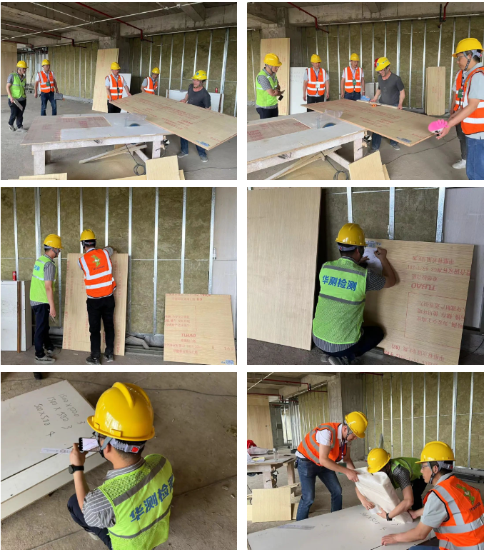 此外,建筑公司代表湖南建投六建三分公司和华测检测认证集团股份有限公司也来到了现场,其中华测检测认证集团股份有限公司的专业人员还对产品进行了现场抽样封样。将样品直接送往国家防火建筑材料质量检验检测中心和国家人造板与木竹制品质量检验检测中心,接受科学严谨的检测流程和国家规范的检测标准。检测内容主要包括产品的防火性能、环保性能等关键指标。此次公检的结果也会后续向社会和消费者公示,接受社会各界的监督和评价。兔宝宝相信,只有通过公开透明的方式,才能真正赢得消费者的信任和认可。