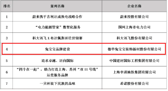 由德华兔宝宝品牌建设中心联合企管部申报的《兔宝宝品牌建设》案例成功入围“首批长三角国际品牌创新案例”。