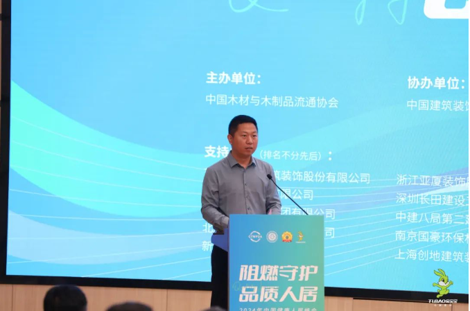 中国木材与木制品流通协会会长李佳峰在致辞中提到希望通过这次会议凝聚共识、汇聚智慧,共同赋能建筑装饰装修木质材料产业转型升级,共同推动产品和服务质量迭代升级。