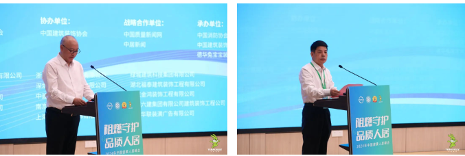 中装协绿色智慧建造分会副会长、德华兔宝宝装饰新材股份有限公司副总经理赵建锋对各位嘉宾朋友的到来表示热烈欢迎,并表示兔宝宝作为装饰材料行业龙头企业,责任重大,我们将会用安全可靠的产品,回馈消费者的信任,守护消费者的安全,推动健康人居事业的发展。