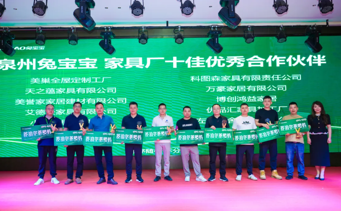 随即由兔宝宝泉州经销商总经理王雅丽为泉州兔宝宝家具厂十佳优秀合作伙伴颁奖,合作伙伴也表达了对兔宝宝的产品和服务的认可。