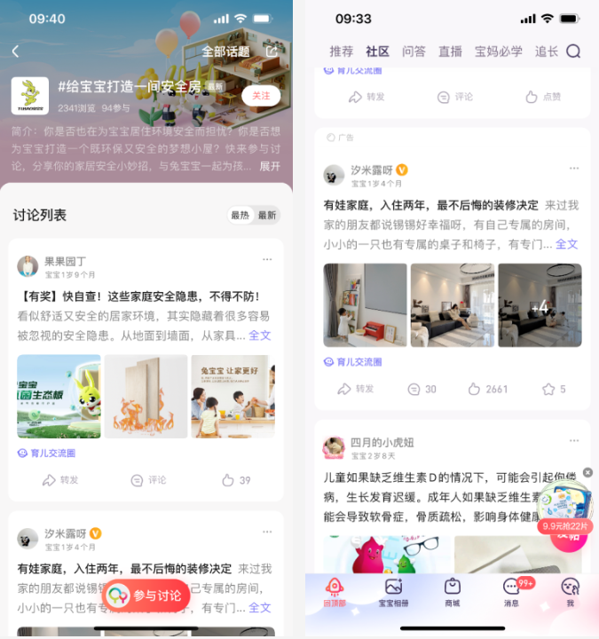 我们还在宝宝树APP上发起了#给宝宝打造一间安全房#的话题。家长们可以在这个平台上晒出你家的温馨角落,并分享宝宝“安全房”的打造心得,无论是关于家具摆放、电源插座安全,还是窗户防护、地面防滑等方面的建议,我们都热切欢迎您的参与,更有机会赢取专属惊喜好礼(床品4件套或京东卡)!我们希望通过这次活动,让更多的家长意识到居家安全的重要性,并学会如何为孩子打造一个更加安全、舒适的成长环境。同时,我们也希望通过这次活动,让家长们能够互相学习、交流经验,共同为孩子们的成长助力。让我们携手共建“安全房”,为孩子的未来添砖加瓦!
