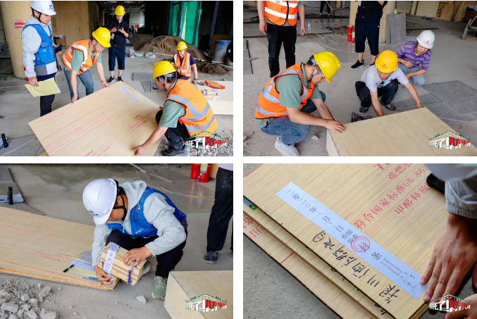 在郑州益利达建材有限公司、兔宝宝公检团队、华测检测认证集团股份有限公司的多方见证之下,由华测检测认证集团股份有限公司的检测老师李星辉对工程现场的兔宝宝难燃板进行随机抽样,并封样寄送权威检测机构国家防火建筑材料质量检验检测中心、国家人造板与木竹制品质量检验检测中心进行检测,其检测内容主要包括产品的防火性能、环保性能等关键指标。