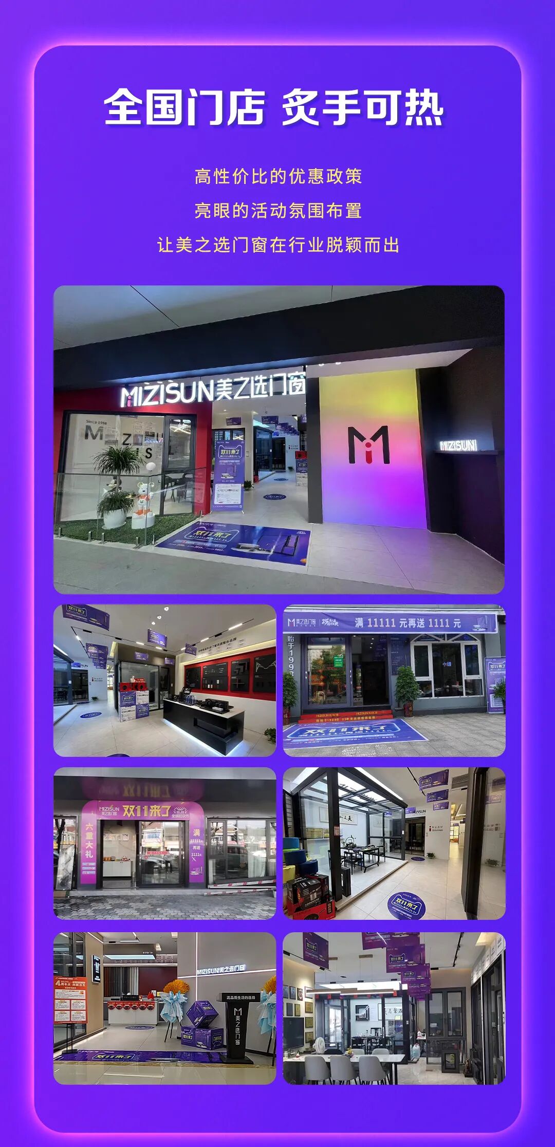 美之选门窗是一家集设计研发制造于一体的现代化家居门窗企业,在佛山南海建有占地8万㎡的智能生产基地,美之选门窗主营窗系统,门系统,淋浴系列等全屋门窗定制产品。美之选门窗在国内拥有600多家专卖店,6000多名专业服务工程师,累计服务超4000万用户,是中国铝合金门窗十大品牌。