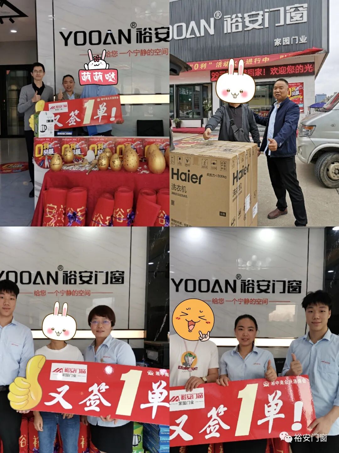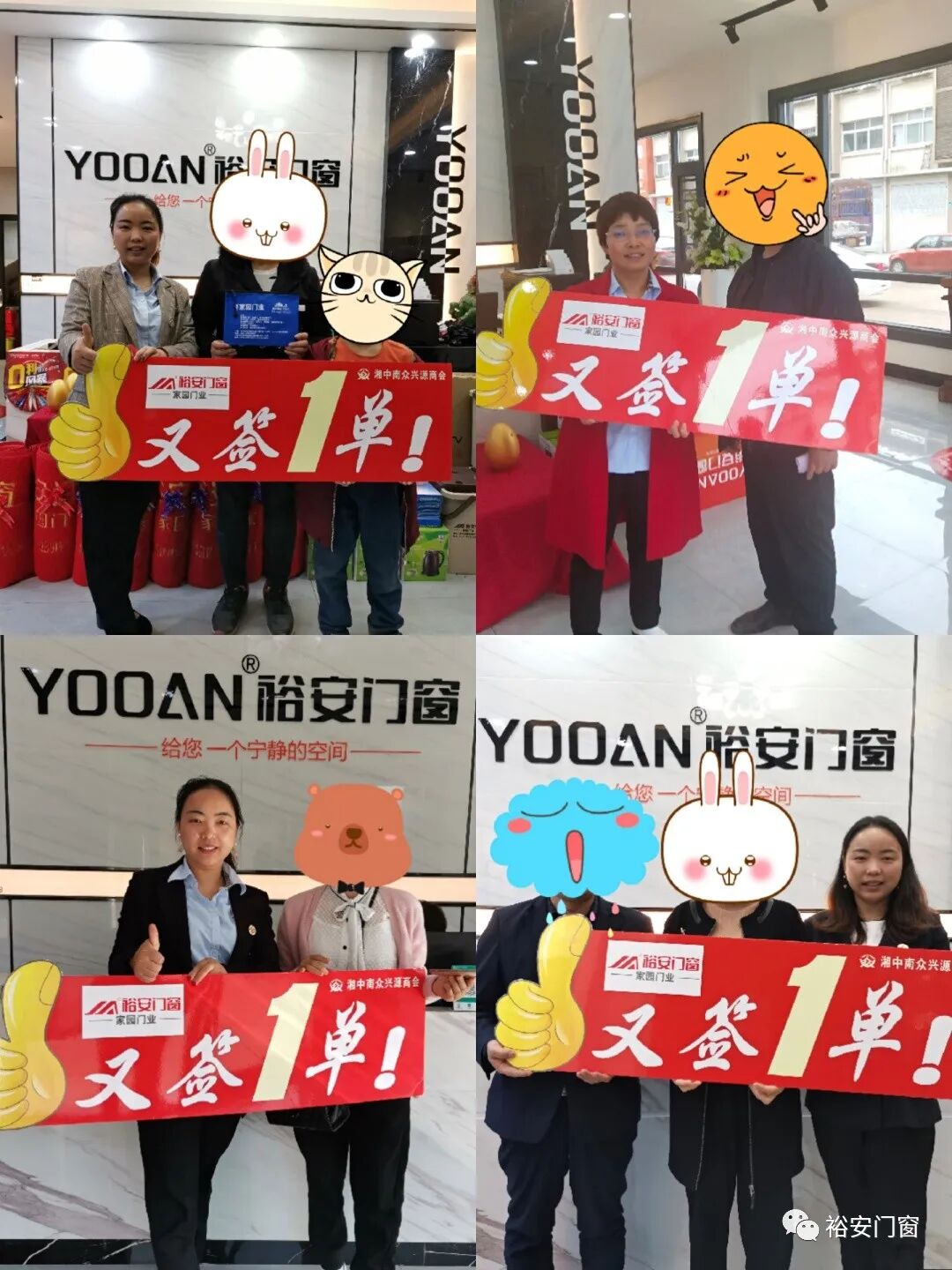 本次活动已经完美结束,裕安门窗凭借着优质的服务、上乘的品质和超高的产品性价比,收获了大批消费者的选择与支持,相信裕安宁乡团队也能让每一位选择裕安的业主由衷地感到满意,在这里,我们预祝裕安门窗宁乡旗舰店生意蒸蒸日上,业绩再创新高。