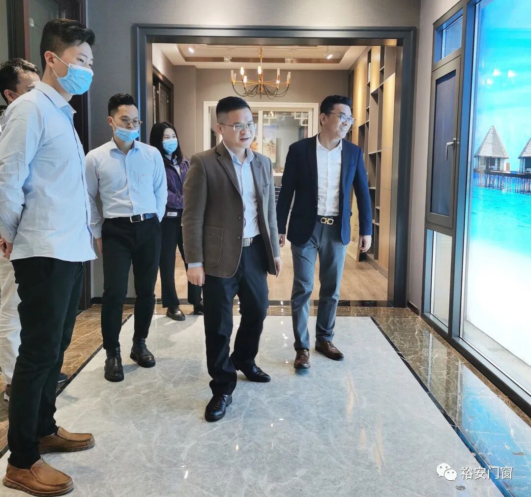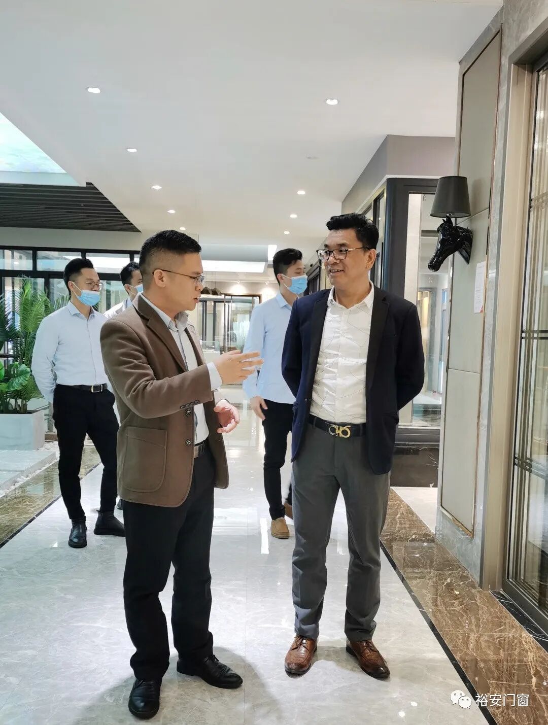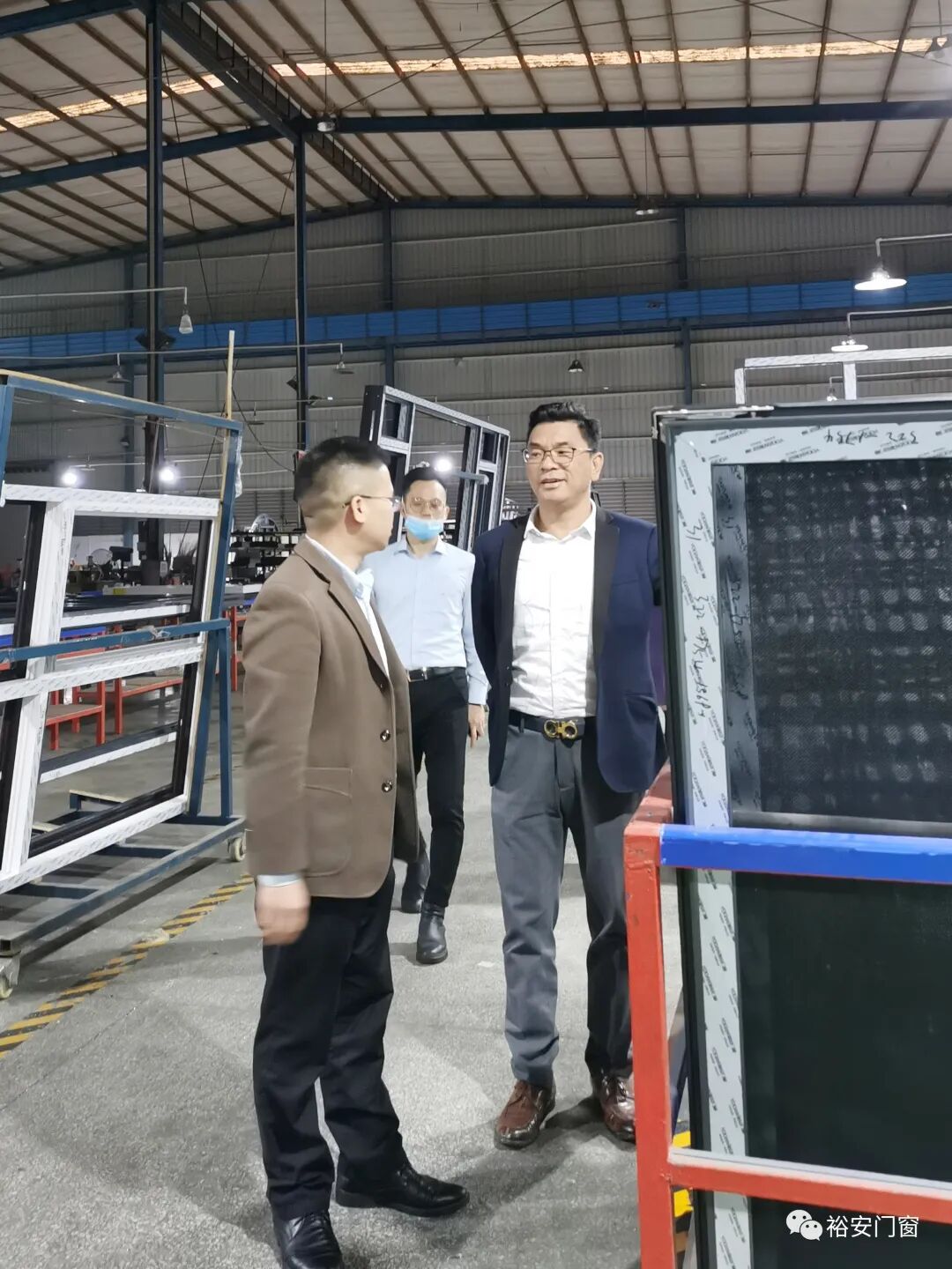 4月23日,汉狮百叶苏总一行人莅临裕安门窗总部进行参观交流,裕安门窗副总经理李永成先生热情地接待并陪同苏总进行内部参观和深度交流。
