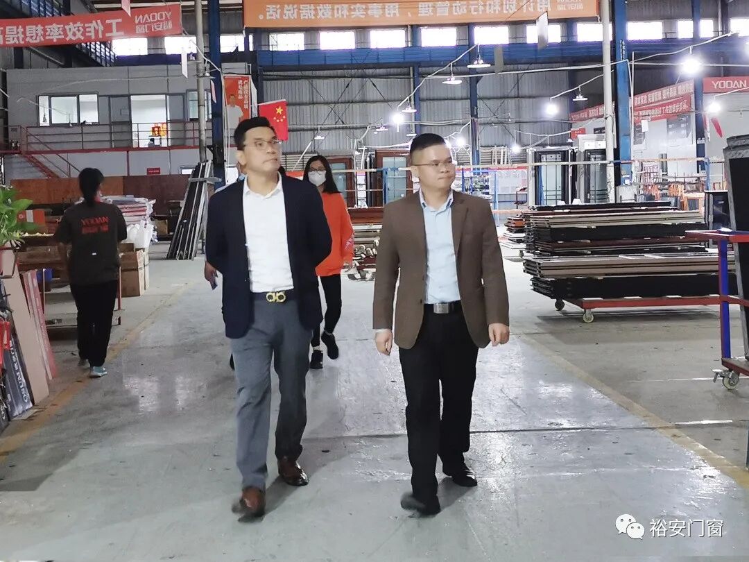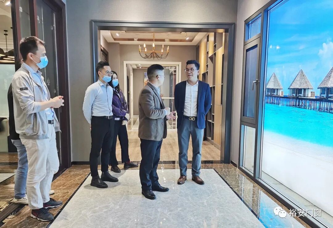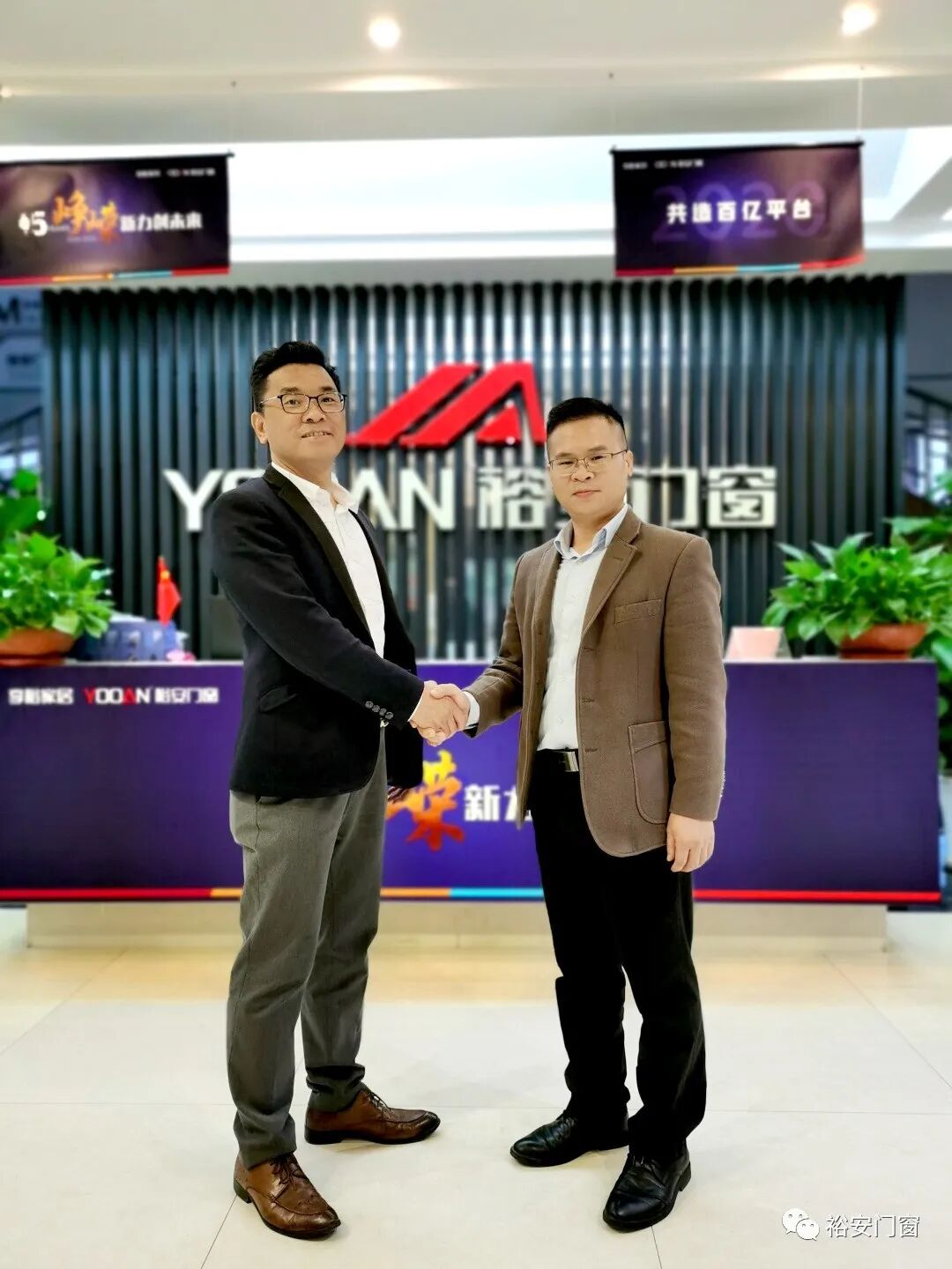 4月23日,汉狮百叶苏总一行人莅临裕安门窗总部进行参观交流,裕安门窗副总经理李永成先生热情地接待并陪同苏总进行内部参观和深度交流。