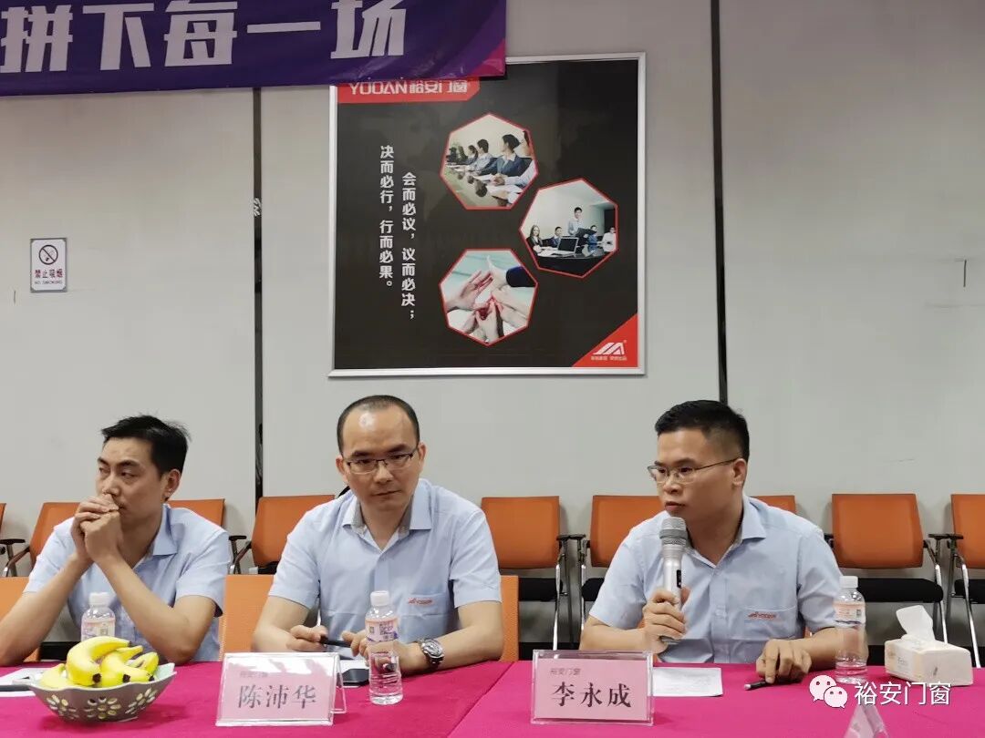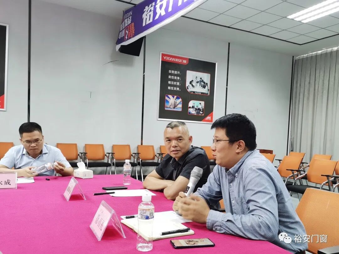 在会议中,每位嘉宾或为裕安门窗带来最新的行业资讯,或为裕安门窗的发展提出中肯的建议,让裕安受益匪浅。最后,黄董总结并指出,在全球疫情下的门窗企业,应该发挥出各自的优势,抱团发展,明确目标,用真心做事情,以实践迎接挑战,打破所有的不利因素共谋长远发展。