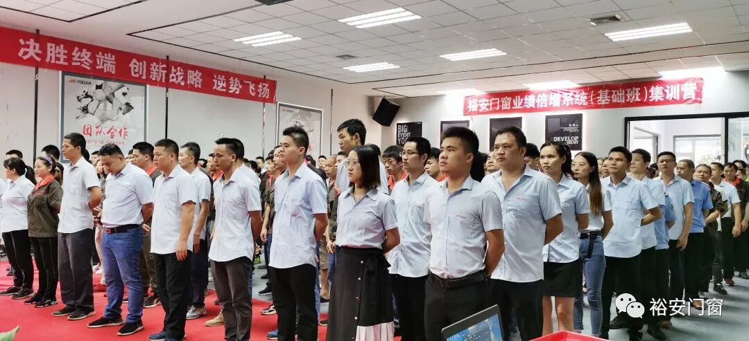 裕安董事长黄秋盛先生和裕安门窗生产中心、营销中心、行政中心、采购、研发等各职能部门全体领导和员工参加了此次大会。