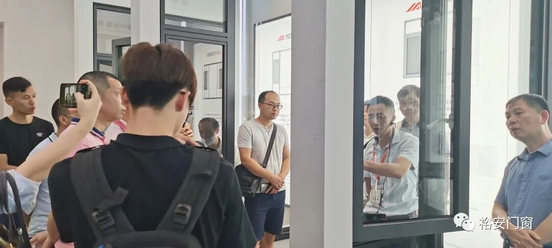 在参观完生产制造中心之后,由技术研发总监黄根全黄工带领大家参观了裕安门窗产品体验中心,并向嘉宾们一一介绍了裕安门窗各系列产品的设计研发思路、产品特性及产品性能、应用环境等。通过黄工对裕安门窗产品的深入讲解,嘉宾们对裕安门窗严谨的研发技术、严格的生产工艺、及创新的智造理念有了更深刻的认识。