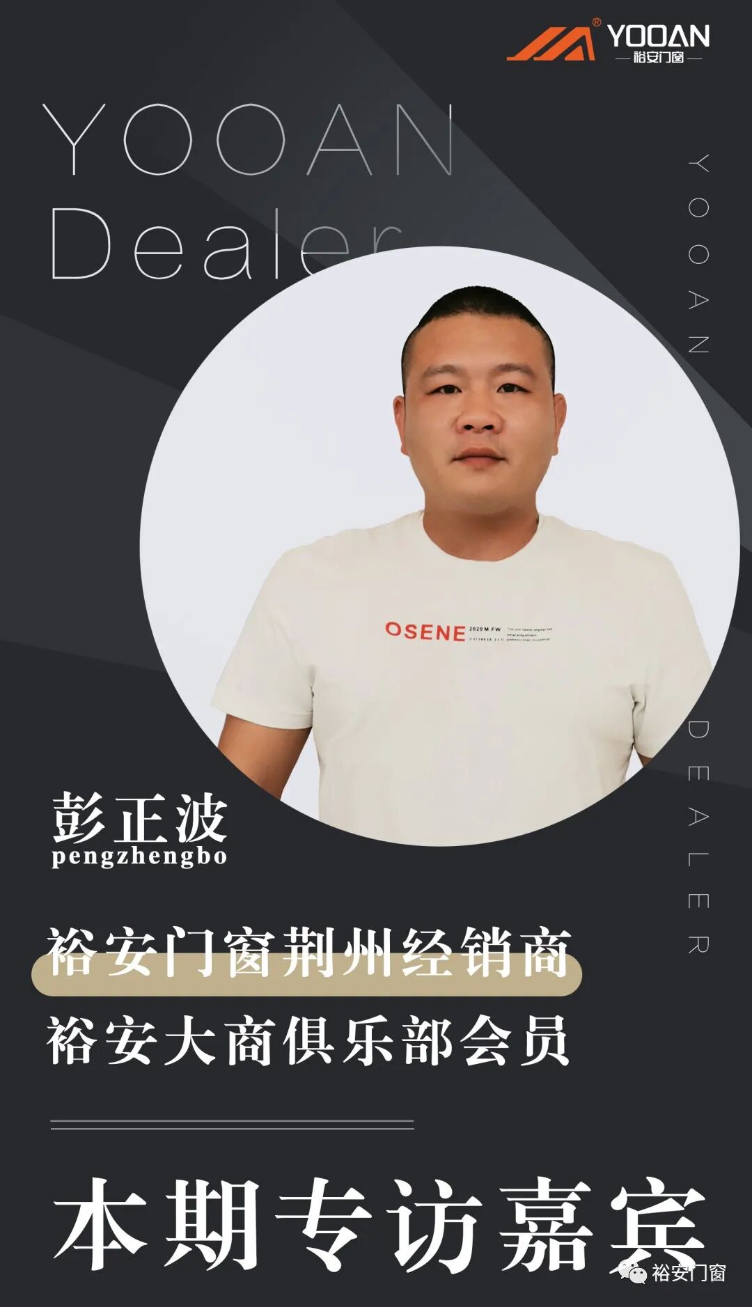 彭正波:裕安门窗大商俱乐部会员,2019年4月加入裕安门窗大家庭。从零开始做门窗,跨界入行,靠着一颗热忱之心和细致入微的服务赢得客户信任,目前已在筹划新二店建设,立志打造裕安门窗荆州片区大联盟。