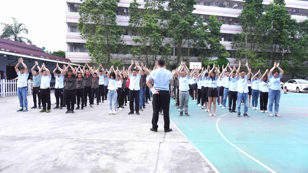 早会一开始由行政麦总组织队伍,传递裕安精神,详细分析各部门努力付出,以及五月的工作态度,强调安全防骗问题。