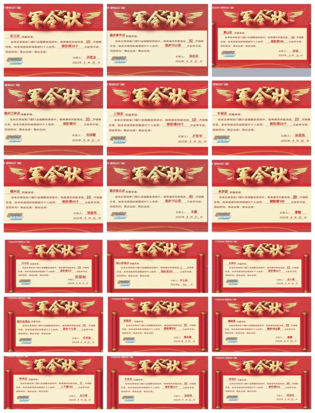 凝心聚力赢战五一,对于本次活动全国各大门店争先参与、积极响应,将店面氛围进行精心布置,门头布置、店内立标语、拉花吊旗挂满...活动氛围感直接拉满!迅速开启了战时状态,全力出征再创佳绩。