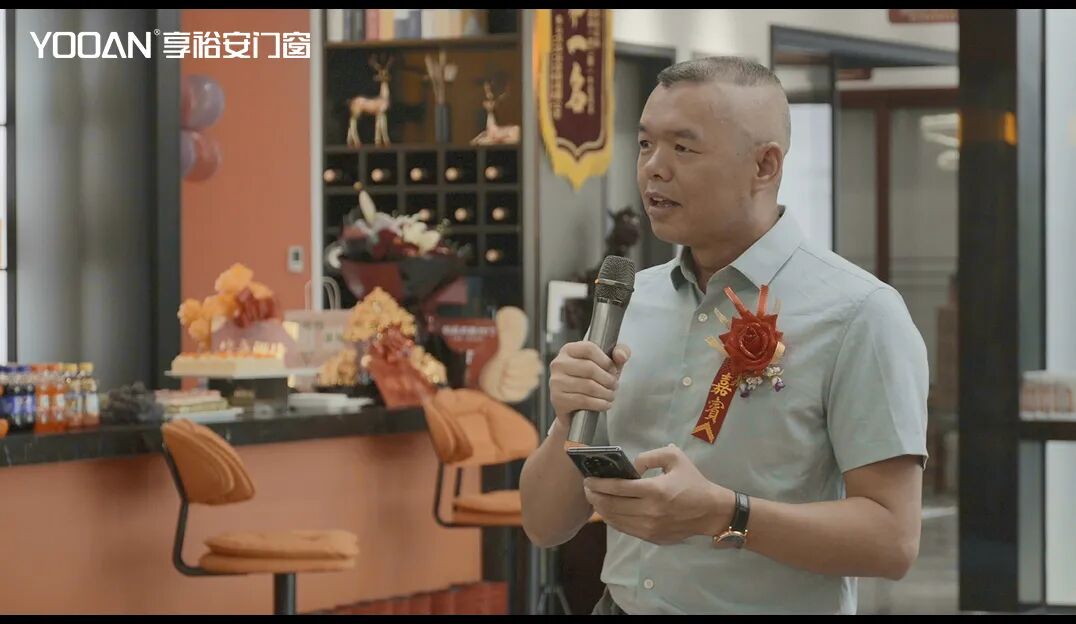 享裕安门窗董事长黄秋盛代表总部为茶陵旗舰店送上开业祝福,并说道:茶陵店张总是我们的优秀经销商代表之一,感谢张总十余年的一路同行,把享裕安打造成茶陵当地家喻户晓的门窗品牌。今后,让我们继续携手共同为茶陵市民提供高颜价比的高端安全系统门窗、现代化设计的全屋门窗解决方案。